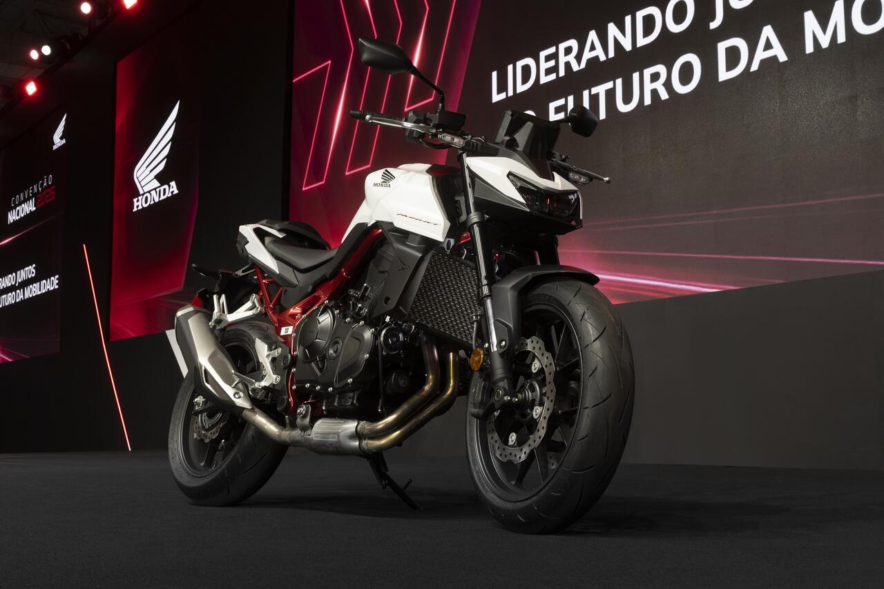 A poderosa streetfighter chega no primeiro trimestre de 2026 para complementar a família Hornet. O modelo será oferecido em duas configurações com destaque para a versão SP que traz itens exclusivos como design único, além de quickshifter, suspensão Ohlins e freios Brembo.