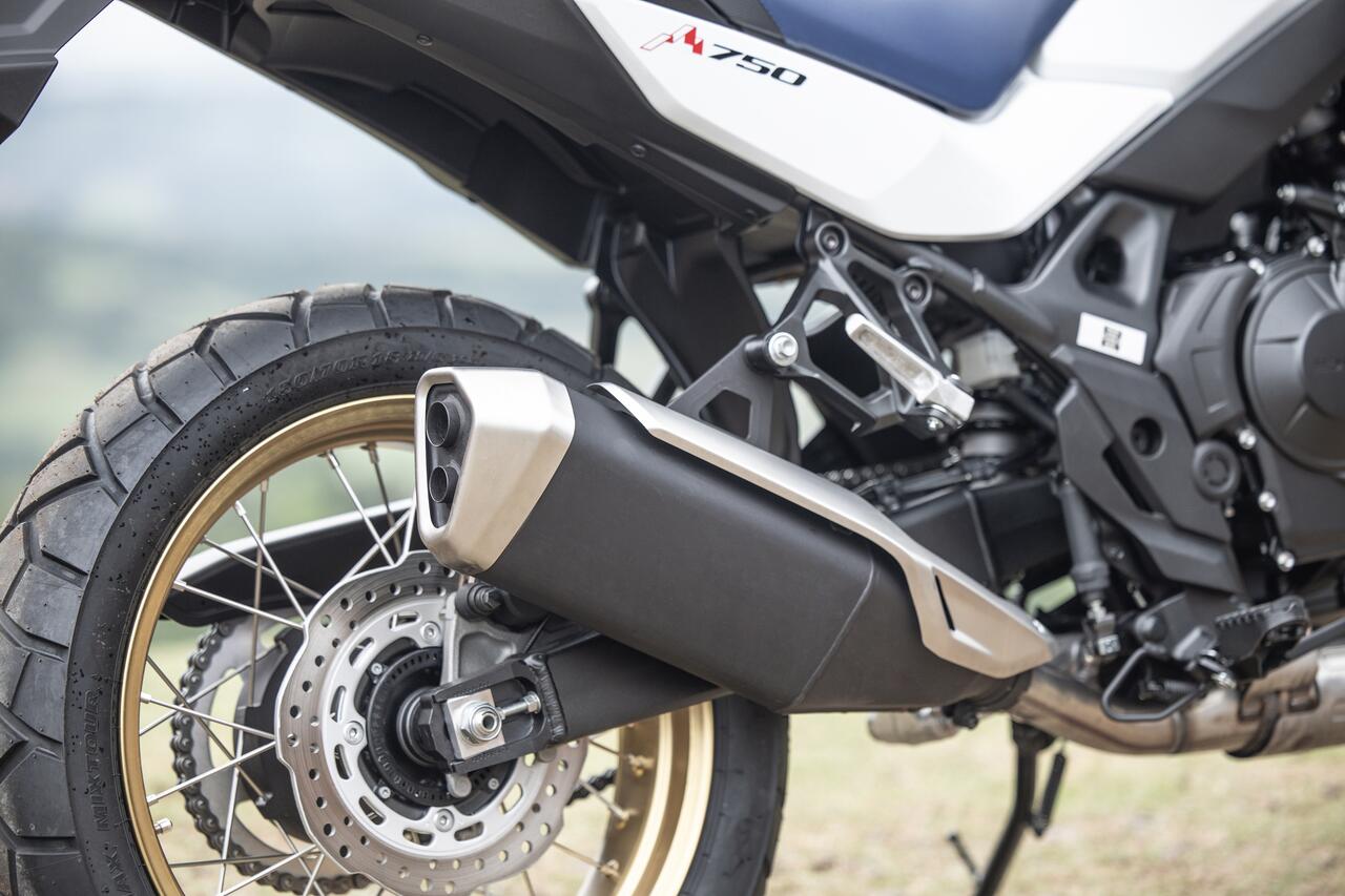 Na traseira o monoamortecedor Showa com reservatório externo e ajuste na pré-carga oferece 190 mm de curso através do sistema Pro-Link vinculado à balança traseira, que é semelhante à da CRF1100L Africa Twin, mas com especificação diferente da liga de alumínio utilizada. A distância ao solo é de 212 mm.