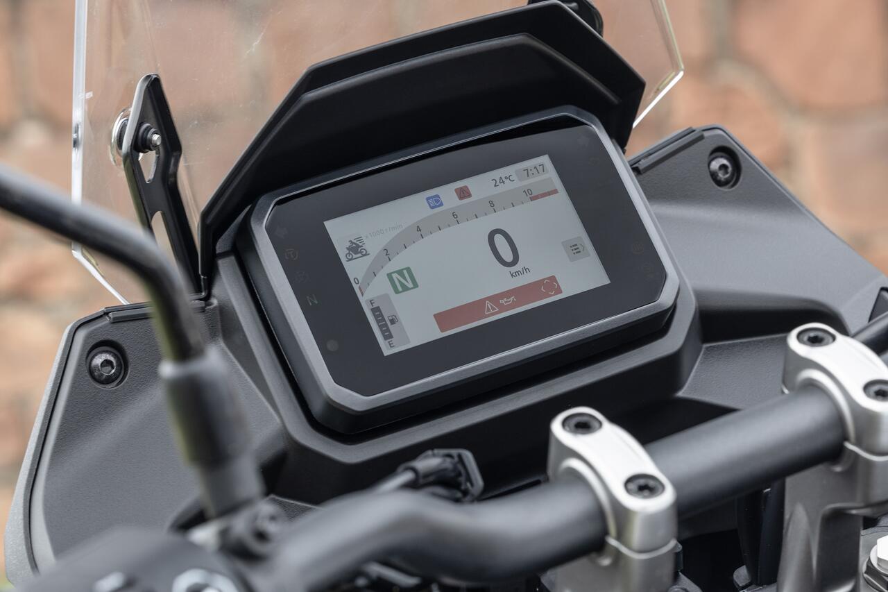 O painel conta com um display colorido TFT de 5 polegadas com três padrões diferentes de exibição e gerenciamento dos sistemas. Ele é operado por um comando retroiluminado no punho esquerdo. Os indicadores de direção se desativam automaticamente e as frenagens bruscas se beneficiam do sistema ESS – Emergency Stop System.